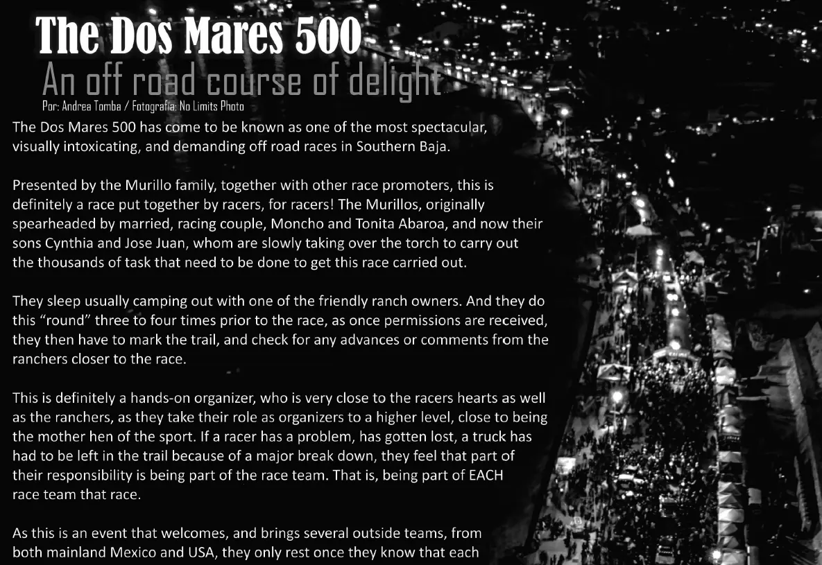 NO LIMITS BAJA's 4 truck effort to tackle the Happiest Race in the world, the YOKOHAMA NORRA MEXICAN BAJA 1000 Rally: Andrea Tomba tells his story of this 1,400 mile challenge.
